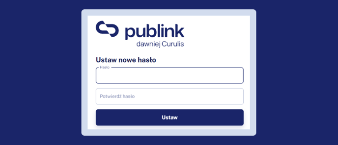 Po kliknięciu w przycisk, w przeglądarce otworzy się strona resetowania hasła, gdzie należy uzupełnić nowe hasło oraz je potwierdzić. Po wypełnieniu pól nowym hasłem, należy kliknąć przycisk „Ustaw”.